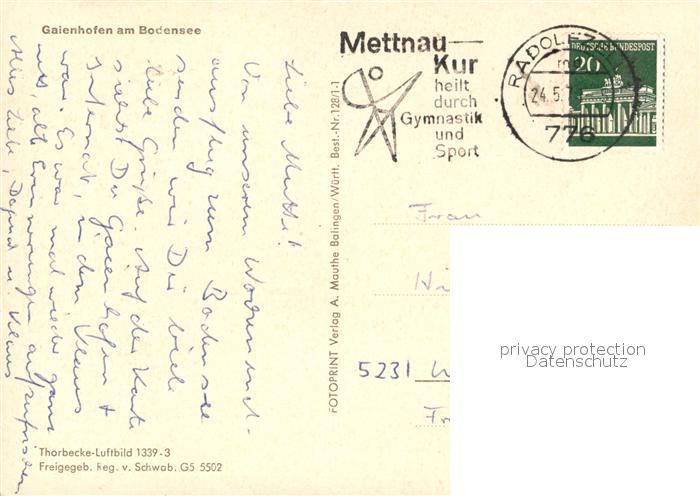 73541860 alte Postkarte Gaienhofen Fliegeraufnahme am Bodensee postalisch gelaufen Erhaltung siehe scans [LiesaD40] KatCode: 11110008335025