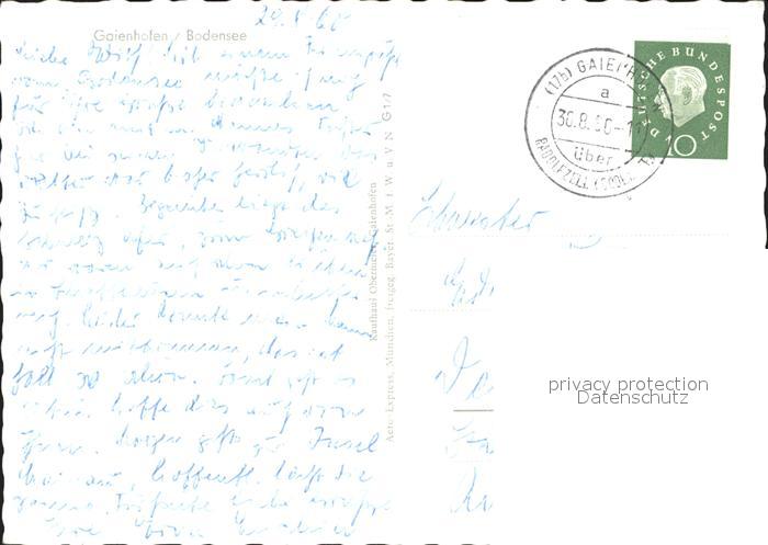 31715236 alte Postkarte Gaienhofen Fliegeraufnahme mit Bodensee postalisch gelaufen Erhaltung siehe scans KatCode: 11110008335025