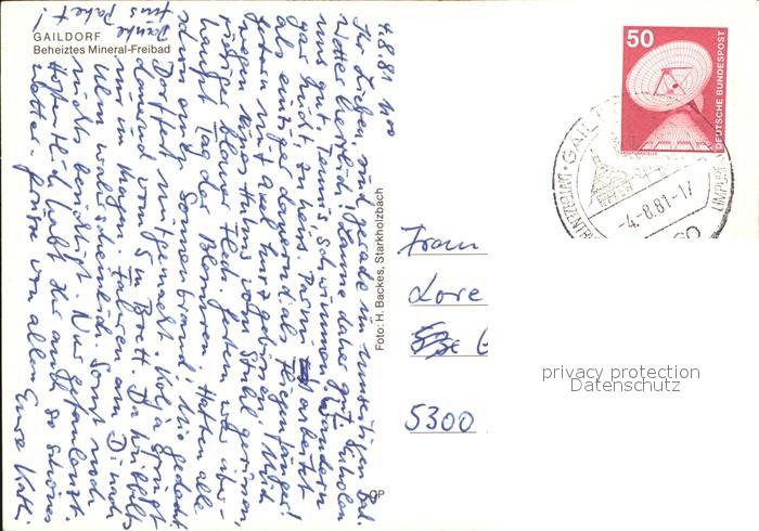 72413100 alte Postkarte Gaildorf Beheiztes Mineralfreibad postalisch gelaufen Erhaltung siehe scans KatCode: 11110008127025