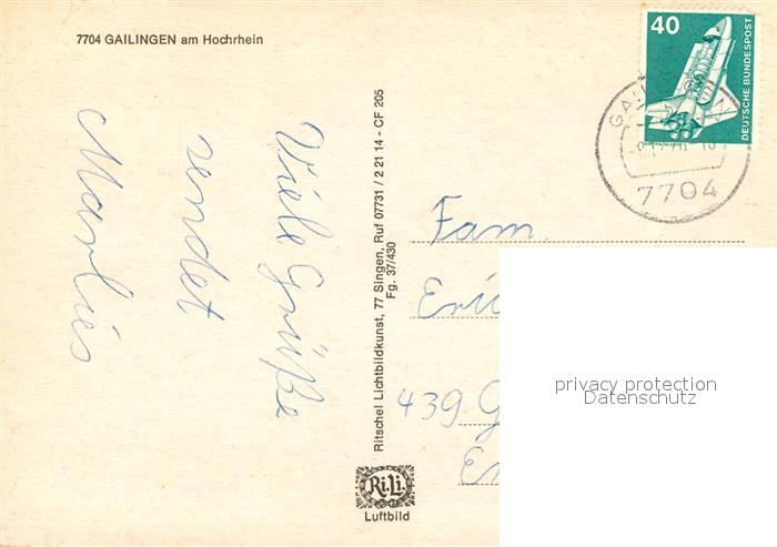 73047781 alte Postkarte Gailingen Fliegeraufnahme Diessenhofen Alte Kapelle Rheinfall Haus Waldshut postalisch gelaufen Erhaltung siehe scans [KathaD81] KatCode: 11110008335026