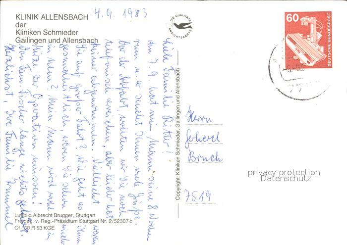 72536023 alte Postkarte Gailingen Fliegeraufnahme Klinik Allensbach postalisch gelaufen Erhaltung siehe scans [LiesaD40 kt120box] KatCode: 11110008335026