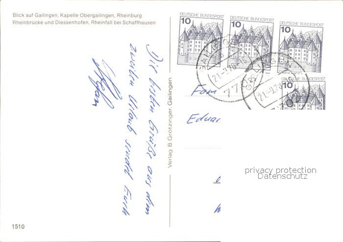 72097490 alte Postkarte Gailingen Kapelle Rheinburg Rheinbruecke Diessenhofen Rheinfall postalisch gelaufen Erhaltung siehe scans KatCode: 11110008335026