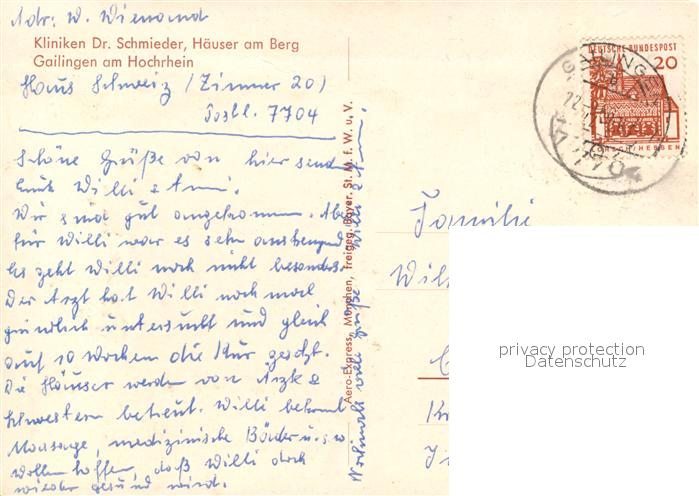 73597199 alte Postkarte Gailingen Kliniken Dr Schmieder Haeuser am Berg Fliegeraufnahme postalisch gelaufen Erhaltung siehe scans [WerneD78] KatCode: 11110008335026
