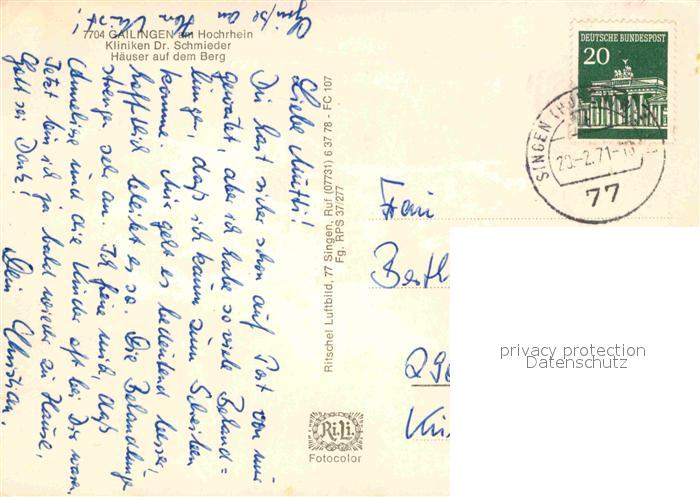 72779418 alte Postkarte Gailingen Kliniken Dr Schmieder Haeuser auf dem Berg Hegau Fliegeraufnahme postalisch gelaufen Erhaltung siehe scans [FriedD77] KatCode: 11110008335026