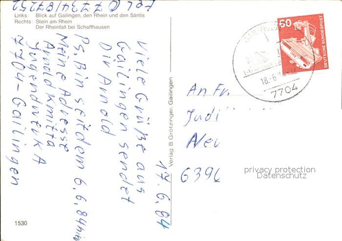 72397673 alte Postkarte Gailingen mit Stein am Rhein Rheinfall bei Schaffhausen postalisch gelaufen Erhaltung siehe scans KatCode: 11110008335026