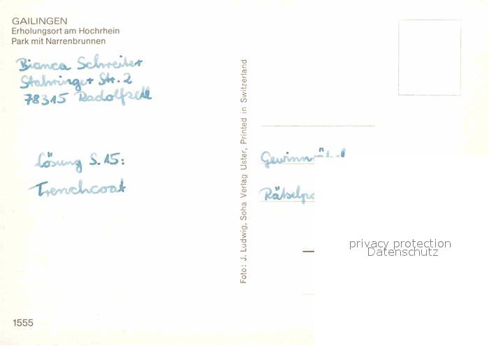 72766011 Gailingen Park mit Narrenbrunnen postalisch nicht gelaufen Erhaltung siehe scans [FriedD77] KatCode: 11110008335026
