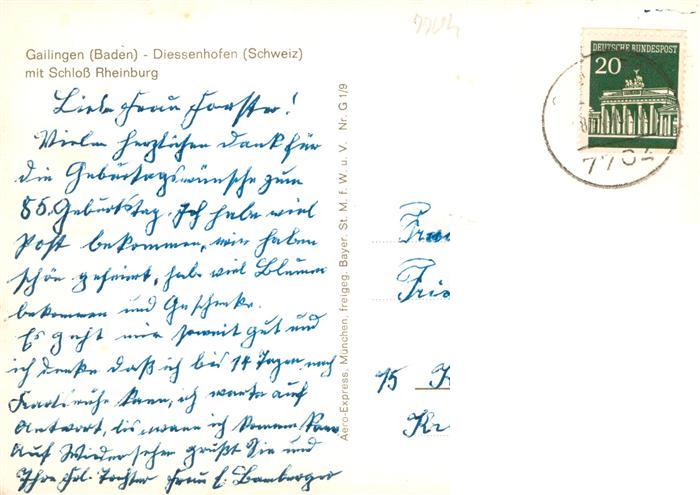 73937596 alte Postkarte Gailingen Singen BW Fliegeraufnahme mit Diessenhofen und Schloss Rheinburg postalisch gelaufen Erhaltung siehe scans [WerneD78] KatCode: 11110008335026