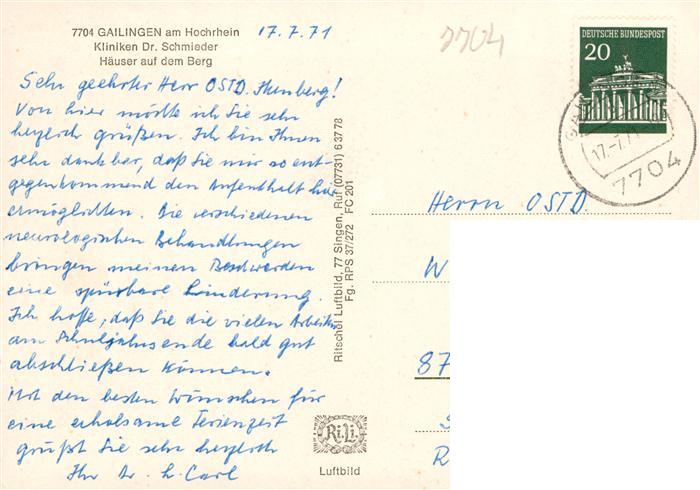 73937562 alte Postkarte Gailingen Singen BW Fliegeraufnahme mit Kliniken Dr Schmieder postalisch gelaufen Erhaltung siehe scans [WerneD78] KatCode: 11110008335026