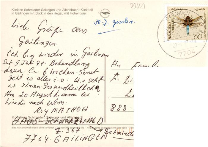 73944391 alte Postkarte Gailingen Singen BW Kliniken Dr. Schmieder Allensbach Hegau Hohentwiel postalisch gelaufen Fliegeraufnahme Erhaltung siehe scans [FriedD77] KatCode: 11110008335026