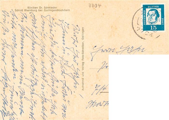 73924666 alte Postkarte Gailingen Singen BW Kliniken Dr Schmieder Schloss Rheinburg postalisch gelaufen Erhaltung siehe scans [FriedD77] KatCode: 11110008335026