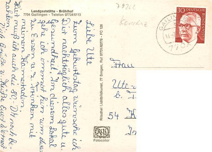 73890536 alte Postkarte Gailingen Singen BW Landgaststaette Bruehlhof postalisch gelaufen Erhaltung siehe scans [FriedD77] KatCode: 11110008335026
