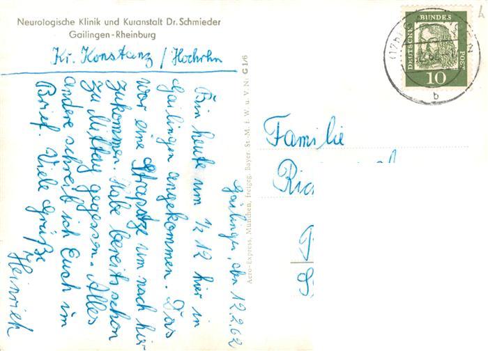 73873533 alte Postkarte Gailingen Singen BW Neurologische Klinik und Kuranstalt Dr Schmieder postalisch gelaufen Erhaltung siehe scans [FriedD77] KatCode: 11110008335026