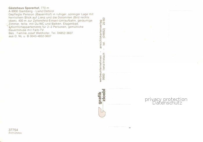 12603874 Gaimberg Gaestehaus Sporerhof postalisch nicht gelaufen Erhaltung siehe scans [LiesaD40] KatCode: 11390333070708