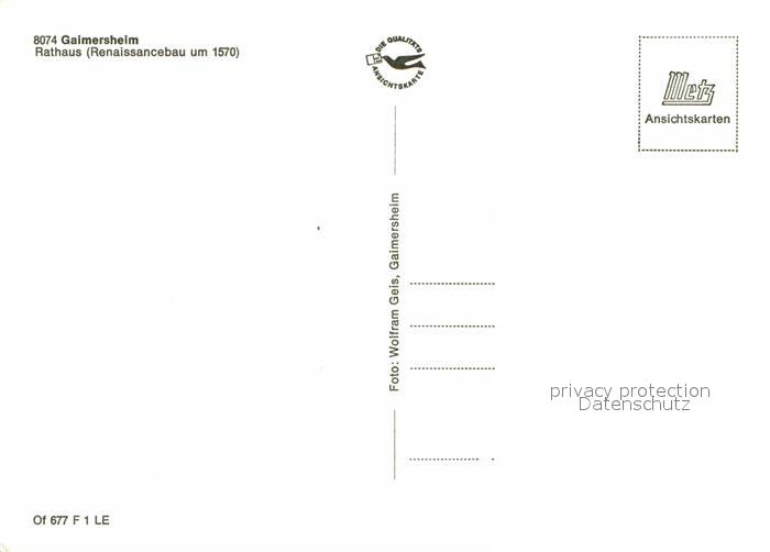72705707 Gaimersheim Rathaus postalisch nicht gelaufen Erhaltung siehe scans [AndreD76] KatCode: 11110009176126
