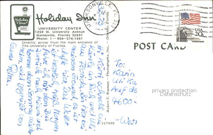 71942232 old postcard Gainesville Florida University Center postalisch gelaufen Erhaltung siehe scans KatCode: 14140110000000