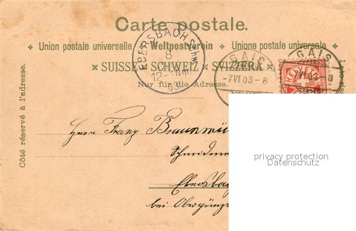 13559892 alte Postkarte Gais AR Panorama Schulhaus Gasthof zur Krone Gasthof zum Falken postalisch gelaufen Erhaltung siehe scans [WerneD78] KatCode: 11470020065548