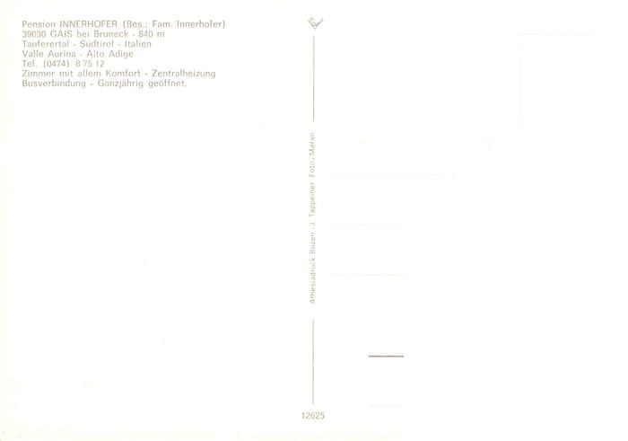 13902387 Gais AR Pension Innerhofer postalisch nicht gelaufen Erhaltung siehe scans [FriedD77] KatCode: 11470020065548