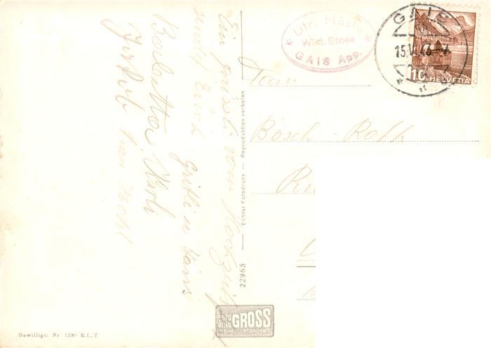 13872372 alte Postkarte Gais AR Wirtschaft zum Stoss postalisch gelaufen Erhaltung siehe scans [WerneD78] KatCode: 11470020065548