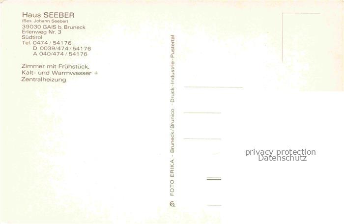 74005901 Gais Bruneck Pustertal IT Haus Seeber postalisch nicht gelaufen Erhaltung siehe scans [WerneD78] KatCode: 11240