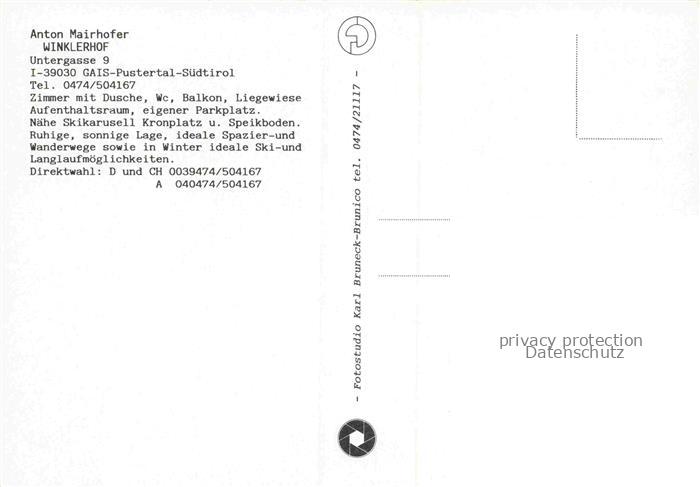 74149254 Gais Pustertal Bruneck IT Winklerhof Gaestehaus postalisch nicht gelaufen Erhaltung siehe scans [FriedD77] KatCode: 11240