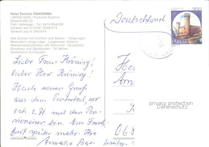old postcard Gais Taufers Hotel Pension Panorama postalisch gelaufen Erhaltung siehe scans