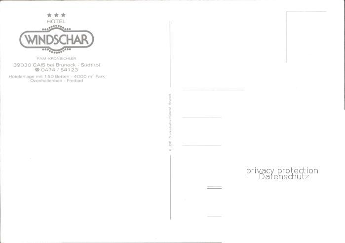Gais Taufers Hotel Windschar postalisch nicht gelaufen Erhaltung siehe scans