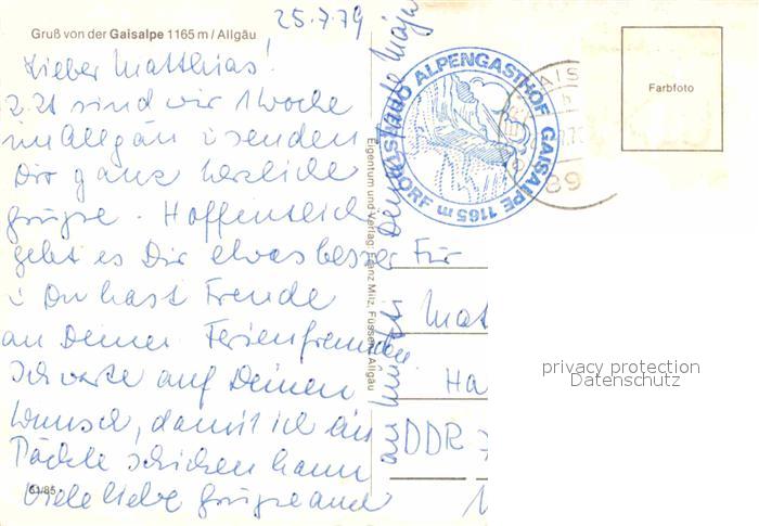 72641445 alte Postkarte Gaisalpe Berggaststaette Bergsee Alpenpanorama Nebelhorn Gipfelkreuz Allgaeuer Alpen postalisch gelaufen Erhaltung siehe scans [FriedD77] KatCode: 11110009780133