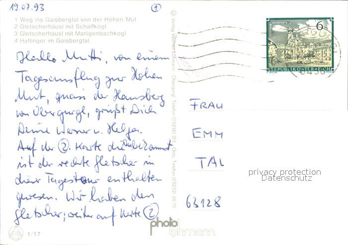 11923293 Gaisberg Weg ins Gaisbergtal Gletscherhäusl mit Schalfkogl und Manigenbachkogl Haflinger KatCode 11390323050101