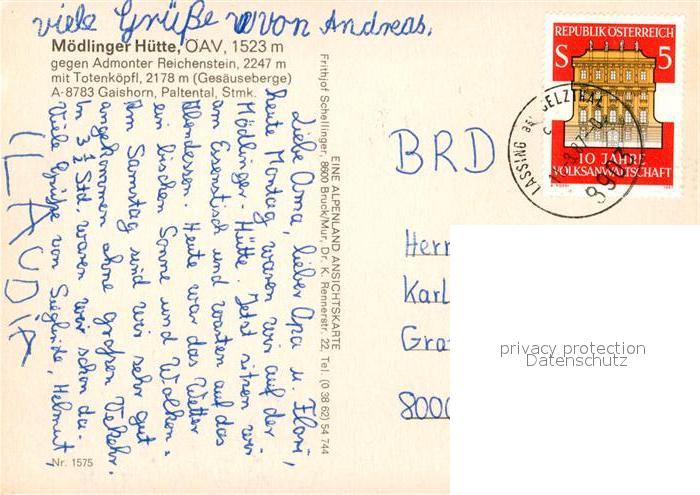73169787 alte Postkarte Gaishorn See Moedlinger Huette postalisch gelaufen Erhaltung siehe scans [KathaD81] KatCode: 11390222061210