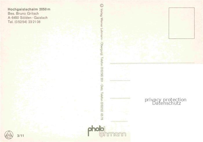 74091374 Gaislachalm 2040m Soelden oetztal AT Hochgaislachalm Panorama postalisch nicht gelaufen Erhaltung siehe scans [WerneD78] KatCode: 11390334070220
