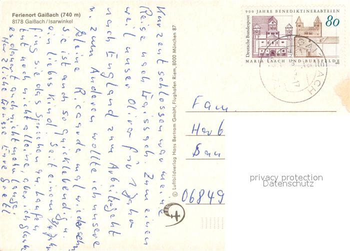 73600037 alte Postkarte Gaissach Oberbayern Ferienort Isartal Alpenpanorama Fliegeraufnahme postalisch gelaufen Erhaltung siehe scans [FriedD77] KatCode: 11110009173124