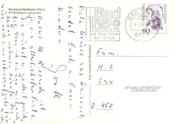 73596682 alte Postkarte Gaissach Oberbayern Panorama Kirche Gasthaus Seeblick Musikgruppe postalisch gelaufen Erhaltung siehe scans [WerneD78] KatCode: 11110009173124