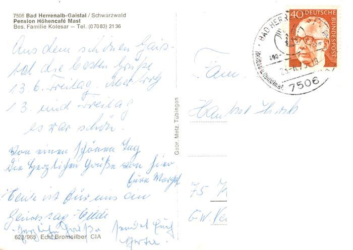 73947051 alte Postkarte Gaistal Bad Herrenalb Hoehencafé Mast Panorama Schwarzwald Bromsilber postalisch gelaufen Erhaltung siehe scans [FriedD77] KatCode: 11110008235033