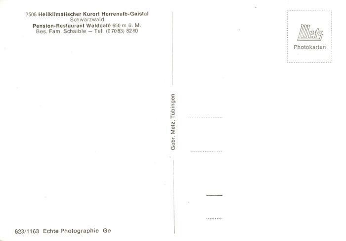 73947053 Gaistal Bad Herrenalb Pension Restaurant Waldcafé Schwarzwald postalisch nicht gelaufen Erhaltung siehe scans [FriedD77] KatCode: 11110008235033
