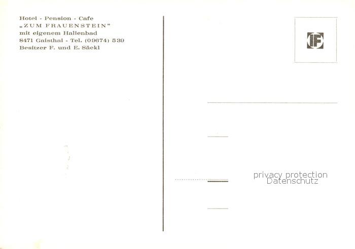 73129511 Gaisthal Oberpfalz Hotel-Pension Zum Frauenstein postalisch nicht gelaufen Erhaltung siehe scans [PaolaD17] KatCode: 11110009376160