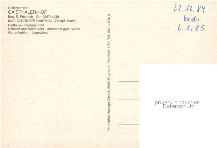 73575371 Gaisthal Oberpfalz Reiterpension Gaisthaler Hof Pferde postalisch nicht gelaufen Erhaltung siehe scans [FriedD77] KatCode: 11110009376160