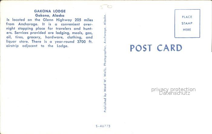 12397887 Gakona Lodge postalisch nicht gelaufen Erhaltung siehe scans KatCode: 14140020000000