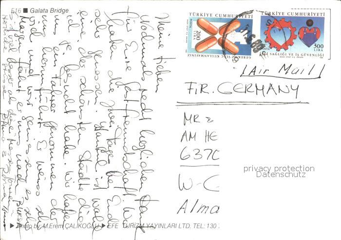 old postcard Galata Karakoey Galata Bridge postalisch gelaufen Erhaltung siehe scans