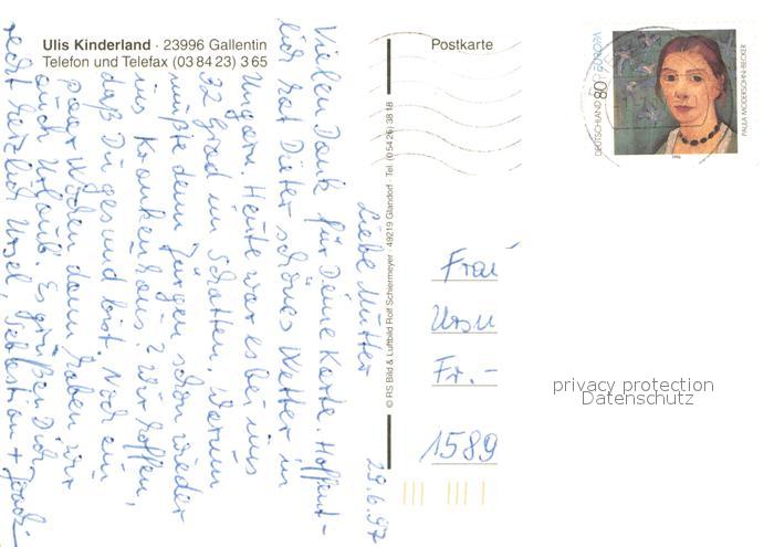73643643 alte Postkarte Gallentin Ulis Kinderland Fliegeraufnahme postalisch gelaufen Erhaltung siehe scans [WerneD78] KatCode: 11110013058003