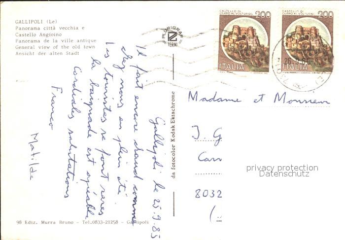 old postcard Gallipoli Altstadt Meer postalisch gelaufen Erhaltung siehe scans
