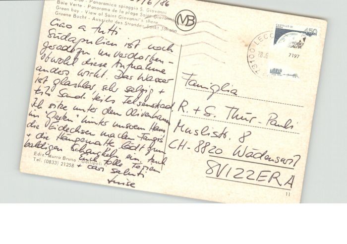 old postcard Gallipoli Baia Verde Spiaggia S. Giovanni Strand St. Johann postalisch gelaufen
