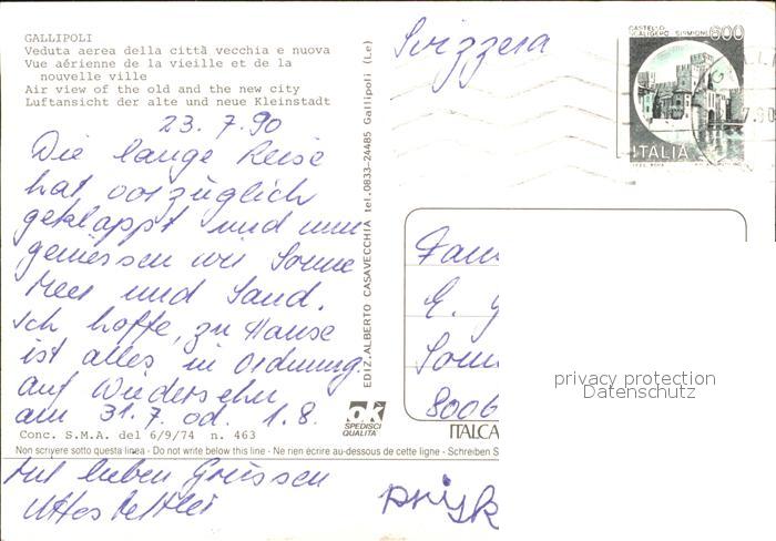 old postcard Gallipoli Fliegeraufnahme der alte und neue Kleinstadt postalisch gelaufen