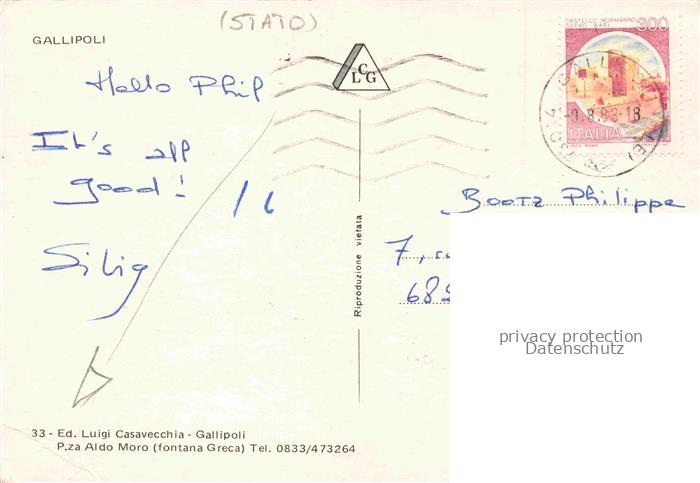 74031291 old postcard Gallipoli Lecce Puglia Divers aspects Plage Centre ville Badenixe postalisch gelaufen Erhaltung siehe scans [FriedD77] KatCode: 11240