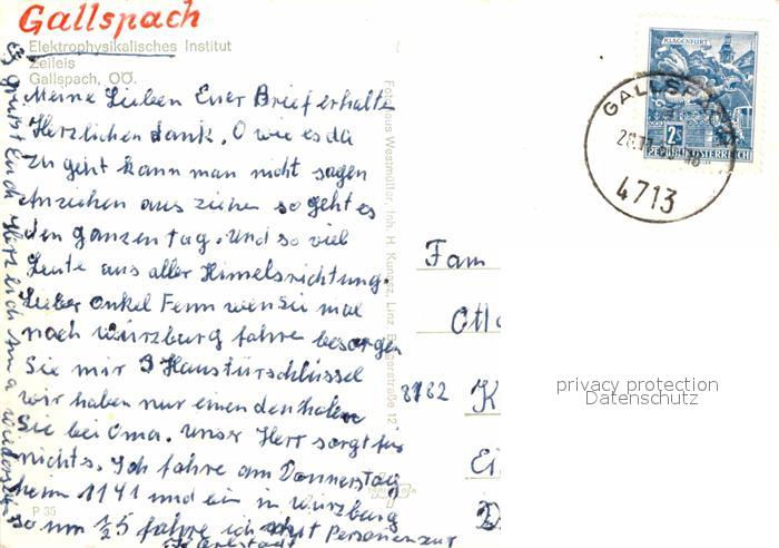 72849301 alte Postkarte Gallspach Elektrophysikalisches Institut postalisch gelaufen Erhaltung siehe scans [KathaD81] KatCode: 11390311040805