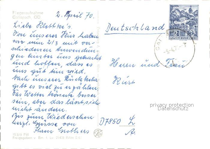 71955432 alte Postkarte Gallspach Fliegeraufnahme postalisch gelaufen KatCode: 11390311040805