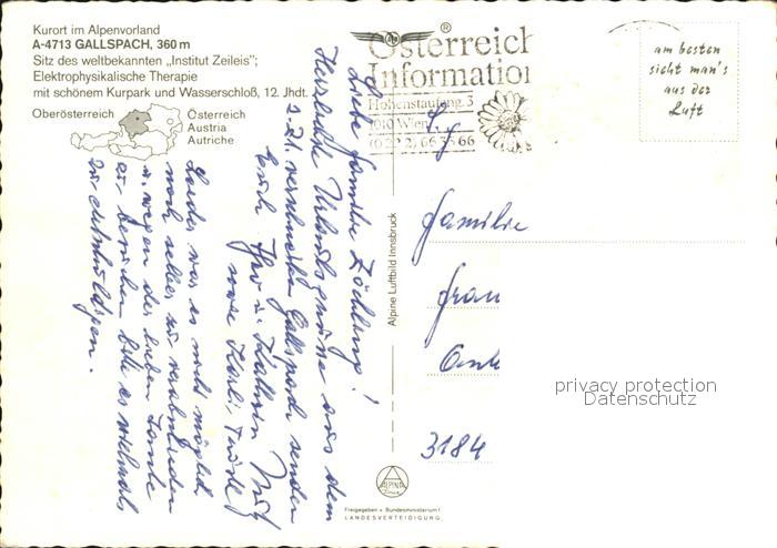 72499577 alte Postkarte Gallspach Fliegeraufnahme postalisch gelaufen Erhaltung siehe scans KatCode: 11390311040805