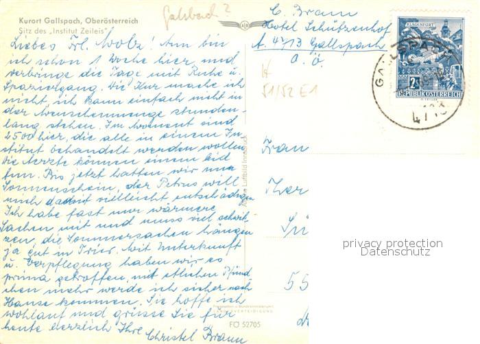 13317607 alte Postkarte Gallspach Fliegeraufnahme mit Institut Zeileis postalisch gelaufen Erhaltung siehe scans [WerneD78] KatCode: 11390311040805