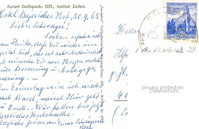 72645209 alte Postkarte Gallspach Institut Zeileis postalisch gelaufen Erhaltung siehe scans [WerneD78] KatCode: 11390311040805