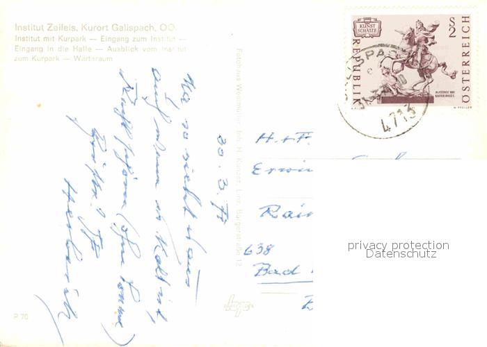 72701208 alte Postkarte Gallspach Institut Zeileis Kurpark Eingang Halle Warteraum postalisch gelaufen Erhaltung siehe scans [KathaD79] KatCode: 11390311040805