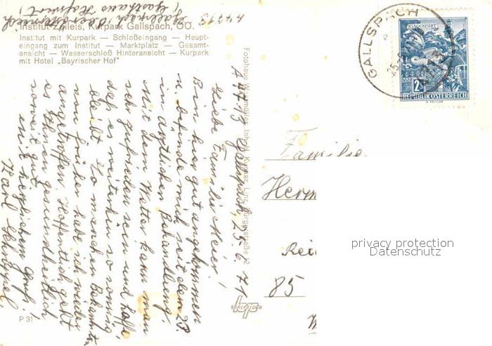 72839959 alte Postkarte Gallspach Kurpark Schlosseingang Marktplatz Hotel Bayrischer Hof postalisch gelaufen Erhaltung siehe scans [LiesaD40] KatCode: 11390311040805